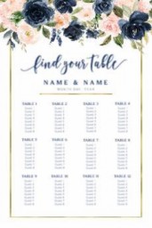 Wedding Floral Fully Seating Poster Chart Plan Navy Board